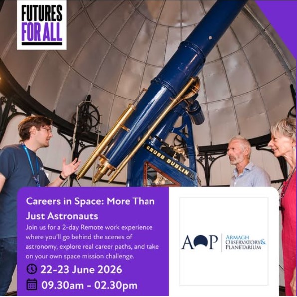 In partnership with Armagh Observatory and Planetarium, we’re offering a remote work experience opportunity for students aged 16–19 to explore the wide range of roles behind the space science sector.