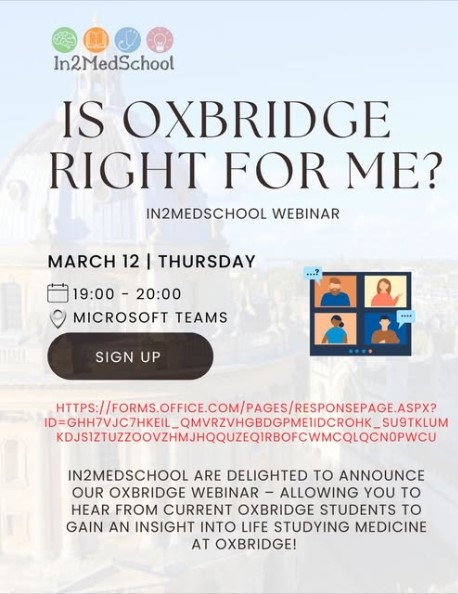 Want to know if Oxbridge is right for you? Join us on March the 12th on teams for our webinar happening from 7-8 pm. Sign up using the link below!