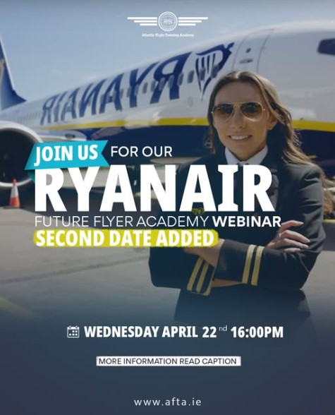 During this one-hour session, you’ll hear from a Senior Pilot Recruitment Officer at Ryanair, AFTA Ryanair Future Flyer Academy graduates, and current cadets as they share their journey into aviation, their training experience, and what life is really like as a cadet pilot.